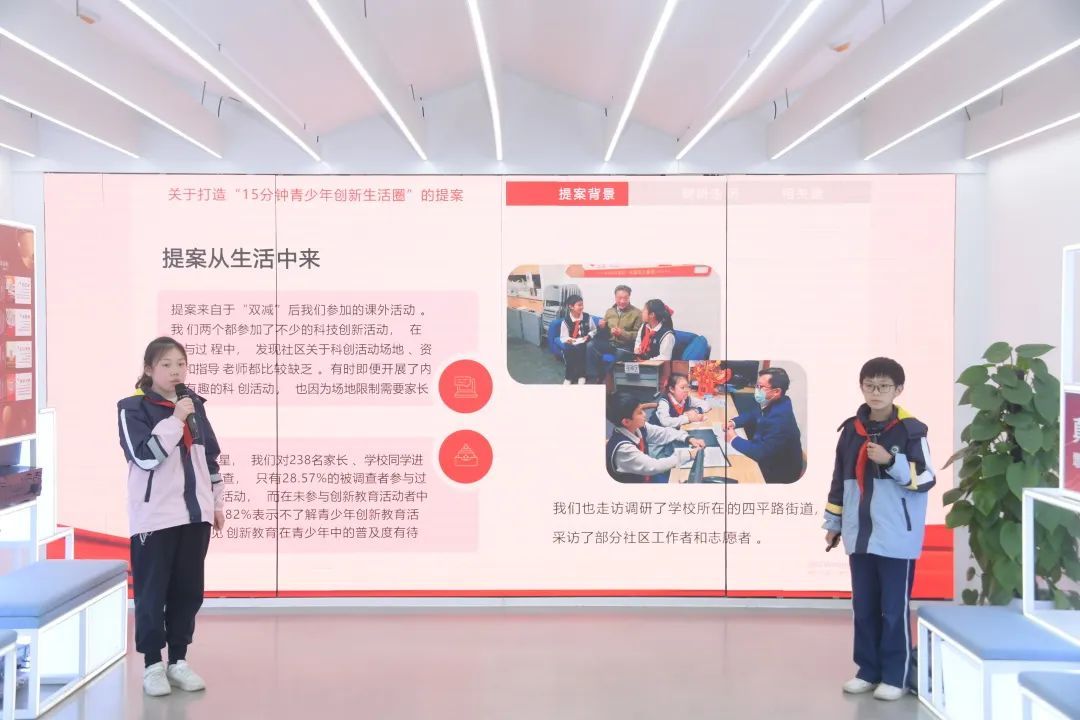 通过大量的走访调研和问卷调查,姚琪雯了解到,除了自己所在的社区科技创新活动稀少外,其他同学所在的社区,科技创新活动同样稀少,于是,姚琪雯就和同学穆家齐,一起提交《关于打造“15分钟青少年创新生活圈”的提案》,希望促进社区科技创新服务的改善。穆家齐告诉记者,“希望我们家门口的公共设施,能为同学们提供科创服务。”