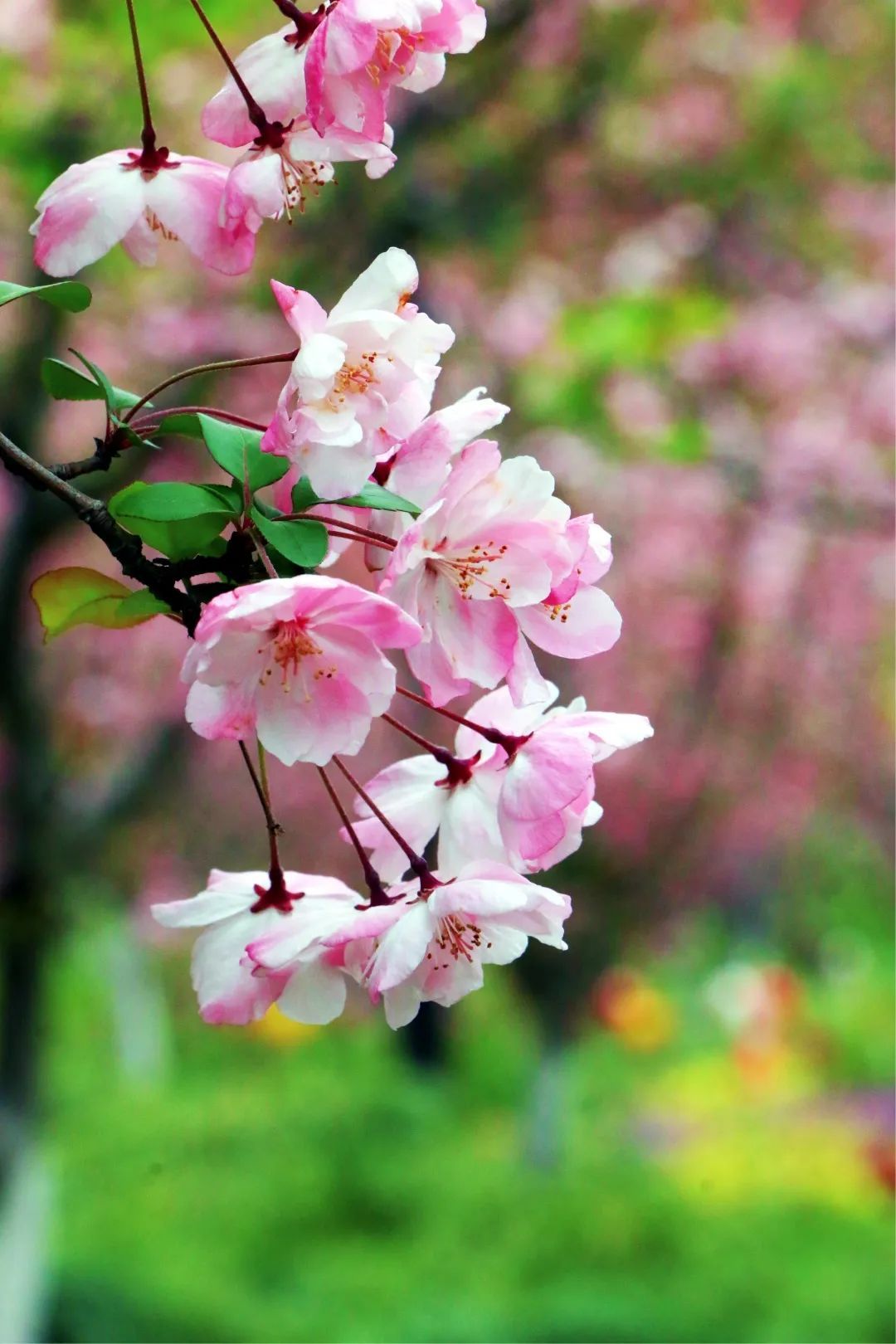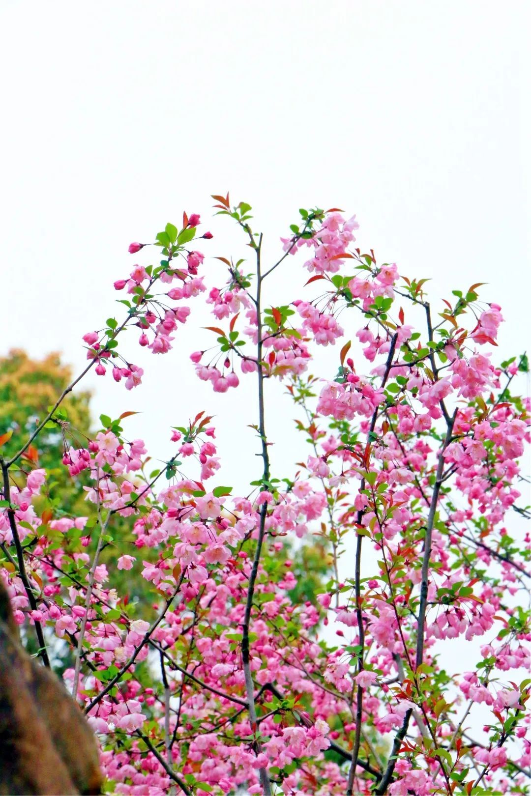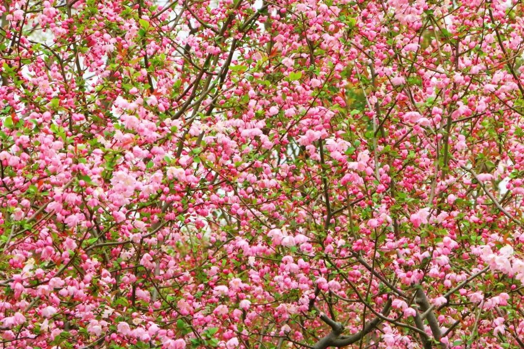 目前盛开在黄兴公园里的海棠花以垂丝海棠为主,辅以北美海棠、西府海棠、木瓜海棠、贴梗海棠等不同品种。成片种植、悉心规划,花开时节,美轮美奂。