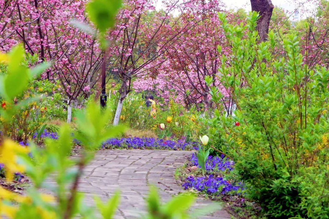 市民们携手相伴、三五成群,在美景之中流连忘返,感受春天的浪漫气息。