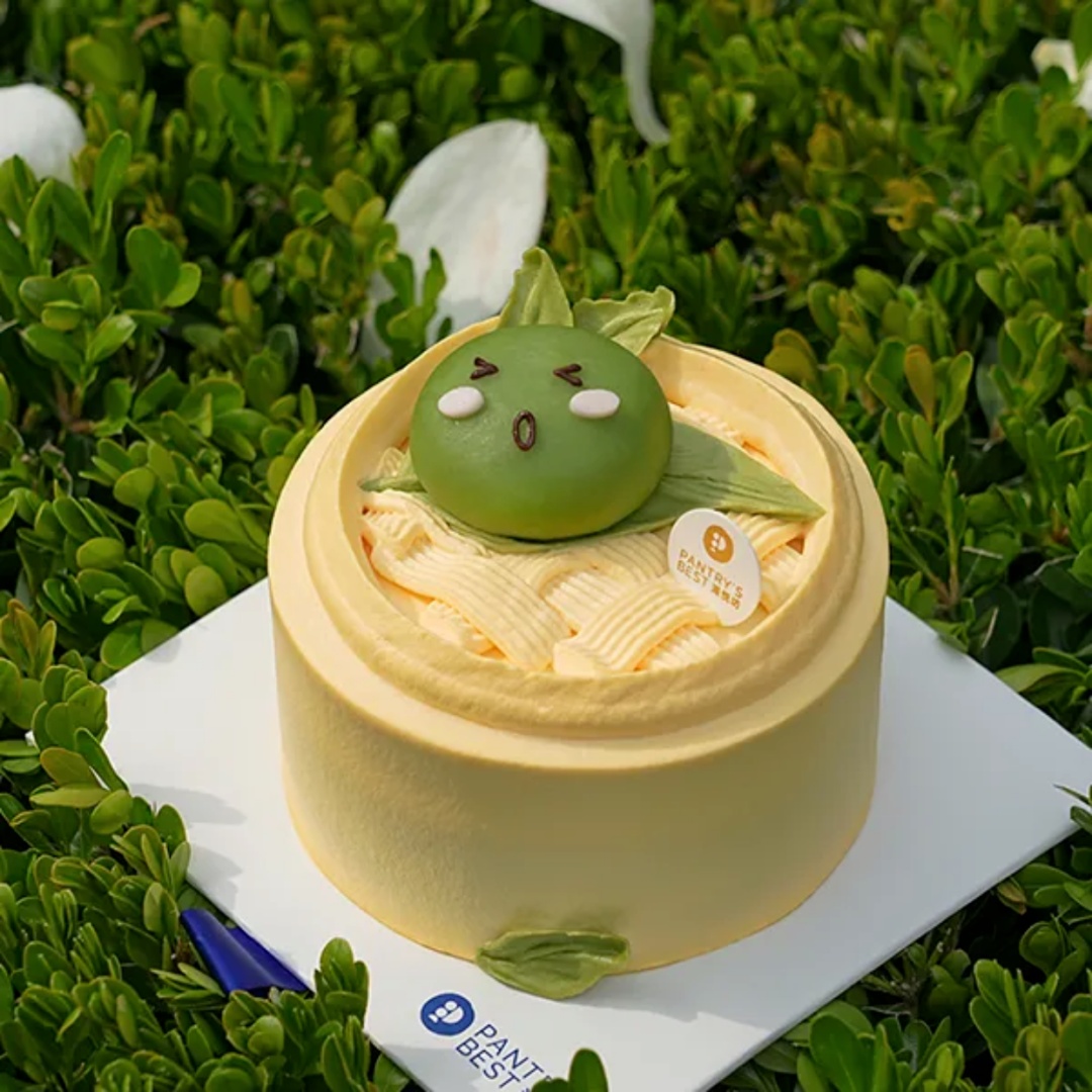 青汁是制作青团的主要材料之一。如果把它放入蛋糕,会是怎样的滋味?派悦坊(虹口龙之梦)将青汁和牛奶、黄油混合,制成青汁卡仕达酱,涂抹在青汁戚风蛋糕胚上,再点缀上圆润可爱的团子装饰。这份可爱又有新意的“糯叽叽”,你喜欢吗?