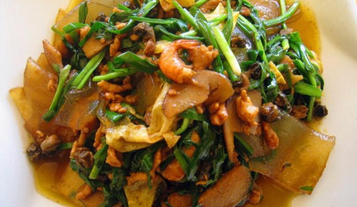 更多场合,螺蛳不以独立身份,反倒与他物相配才上得席面。扬州有一道家常菜叫“炒春伴”,六朝的周颙,因家境清贫而终年食蔬。文惠太子问他蔬食何味最胜?答曰:“春初早韭,秋末晚菘。”作为春菜之魁的早韭和明前螺肉互炒,可谓“王牌对王牌”了。螺肉如黛点缀在翠韭之上,韭菜鲜爽、螺肉鲜香,最是杀饭,令人举箸难放,吃完这盘菜,就像把一盘春天吃下了肚。