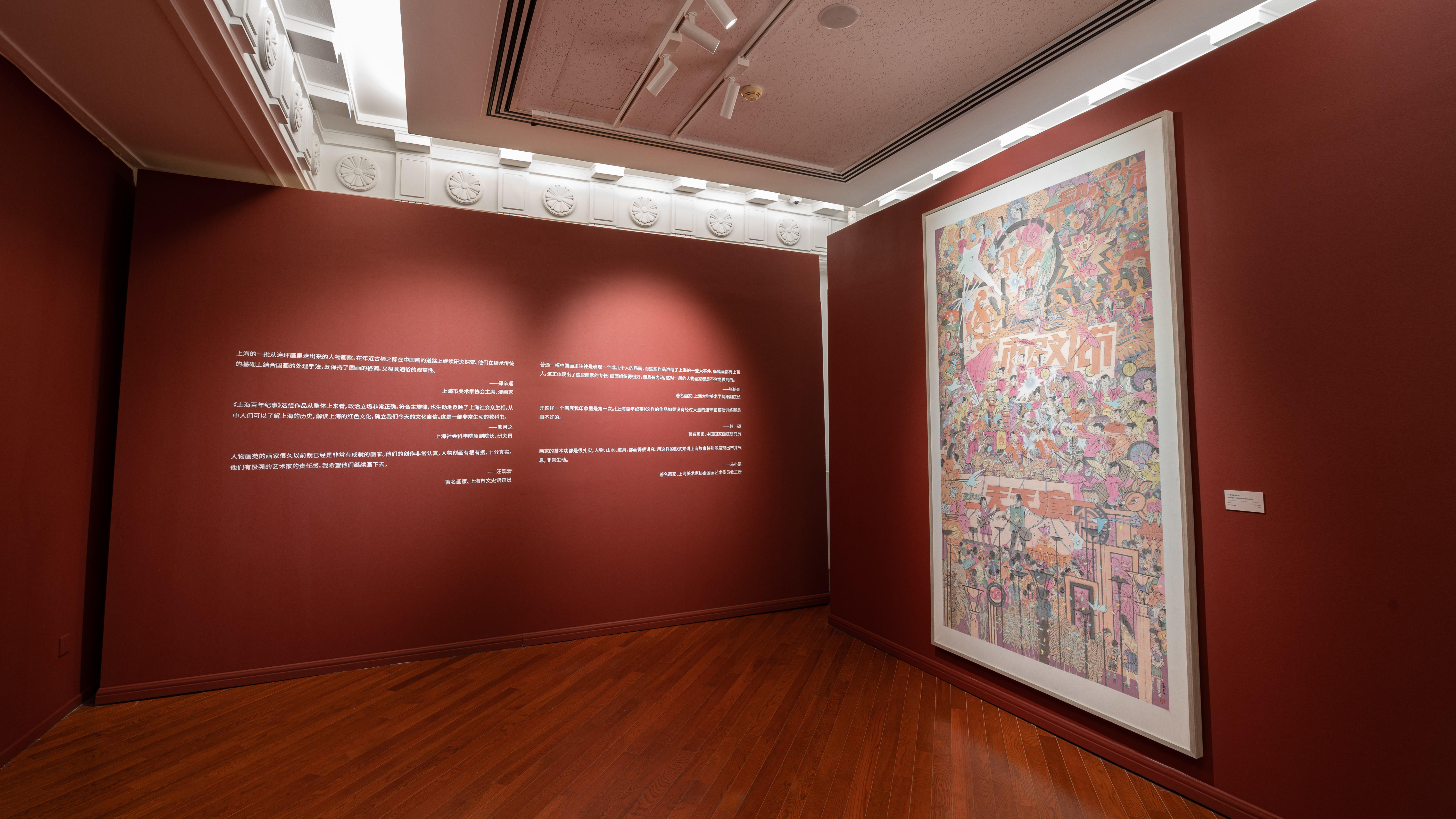 汪观清的另一身份,是上海人物画苑的艺术顾问。上海人物画苑由朱新龙、朱新昌、叶雄、奚文渊、忻秉勇、桑麟康等画师为创作主体,他们擅长以市井人物为特色的上海历史题材创作,有着丰富的创作经验,对驾驭构图和人物造型具有独到的优势。