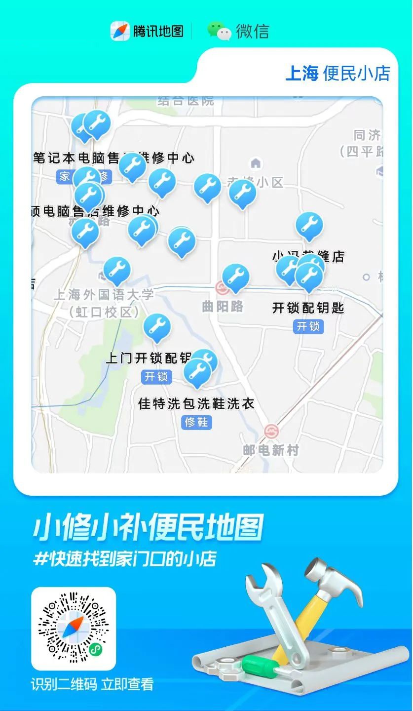 这份全国便民修补小店专属地图,由微信、腾讯地图主导,中国经济网、话匣子、新民晚报等22家战略合作媒体,共同打造。