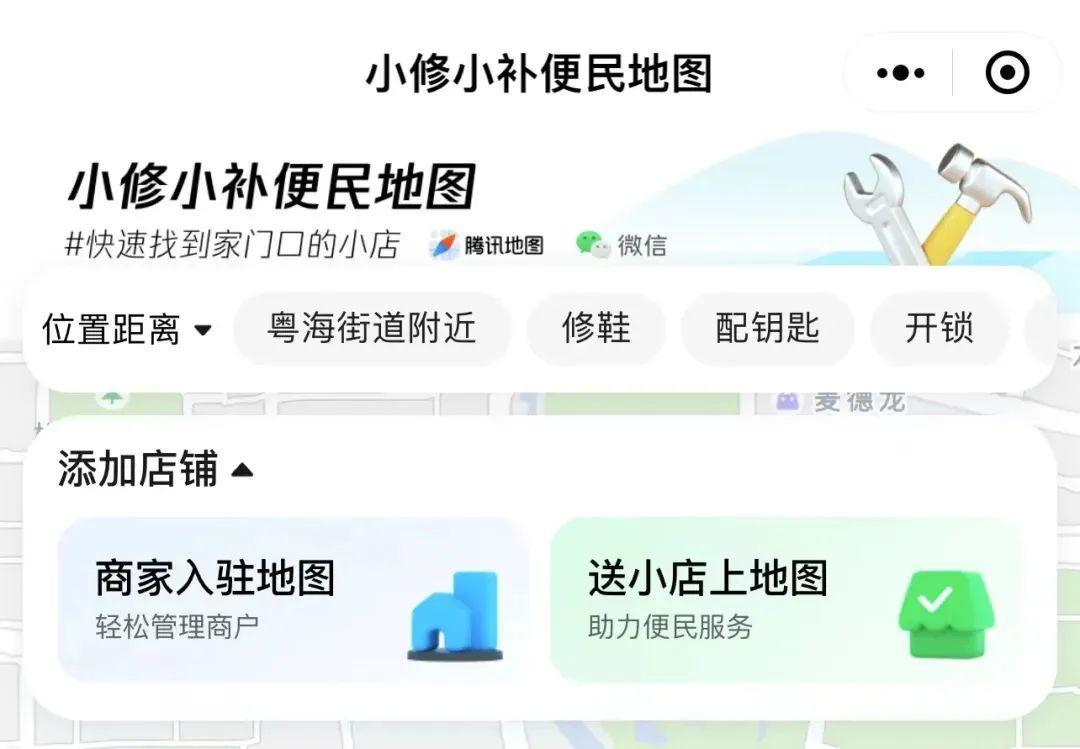 只要在微信搜一搜或腾讯地图App搜索关键词“小修小补”,即可进入“便民修补小店地图”,快速找到家门口的“小修小补”点位,查看地理位置、门面照片、营业时间、联系电话等,并可一键导航。
