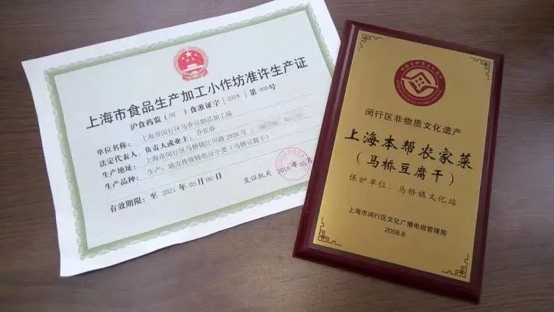 2018年5月,马桥豆腐干拿到了编号为“0001”的上海首张小作坊准许生产证。2020年11月,马桥豆腐干又开出了上海首家直营店。