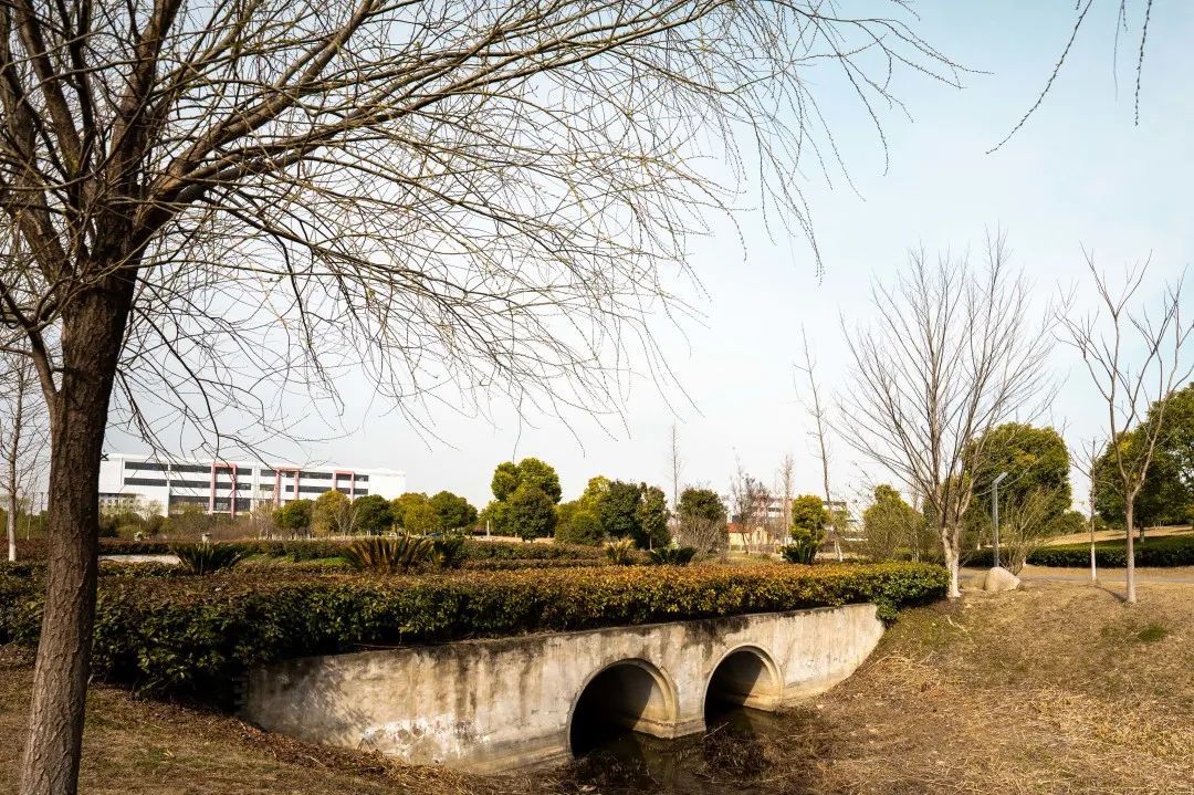 天盈路-学子南路附近是一片工业园区,钢筋水泥建造的厂房鳞次栉比,到处可见工人忙碌的身影。然而就在工业园区中,一抹绿色悄然出现在大家眼前,这就是被称为“工业绿肺”的西大盈港公园。公园西临西大盈港,水系环抱,绿树成荫,植物品种繁多,既有高大挺拔的乔木又有低矮茂密的灌木,还有一些小花草点缀其中。这样一幅美景让人眼前一亮,仿佛置身于一个世外桃源之中。