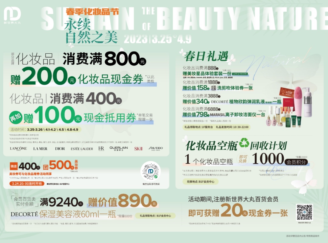 3月25日,新世界大丸百货举办了以“永续自然之美”为主题的可持续美妆活动暨2023年春季化妆品节开幕仪式。