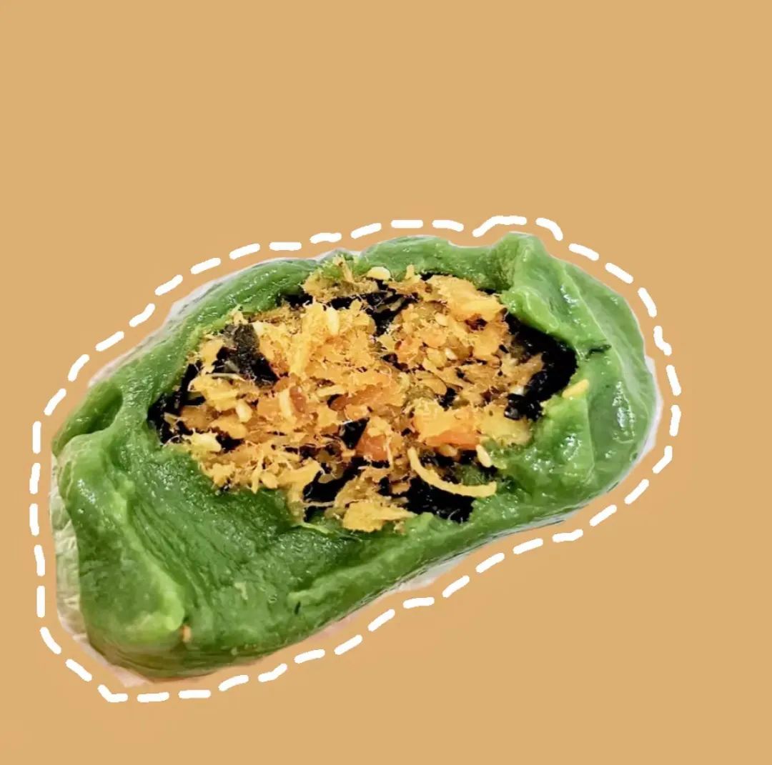 咸蛋黄肉松青团,沙酥流油的咸蛋黄夹杂着如丝如絮的肉松,咸中带甜,回味无穷。