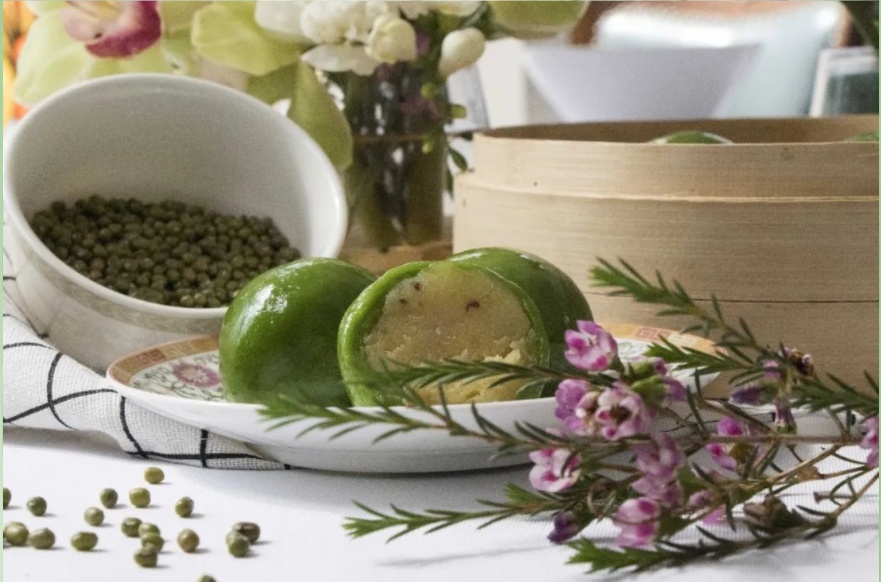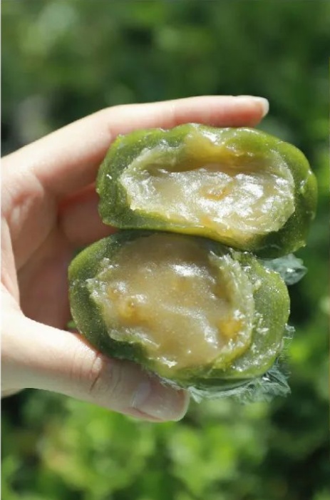 其中,蔓越莓豆蓉青团是创意满满的新口味。绿豆蓉口感甘甜绵密,搭配酸酸软软的蔓越莓,香甜可口。
