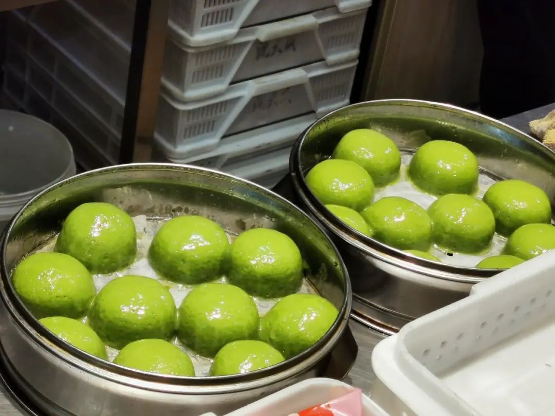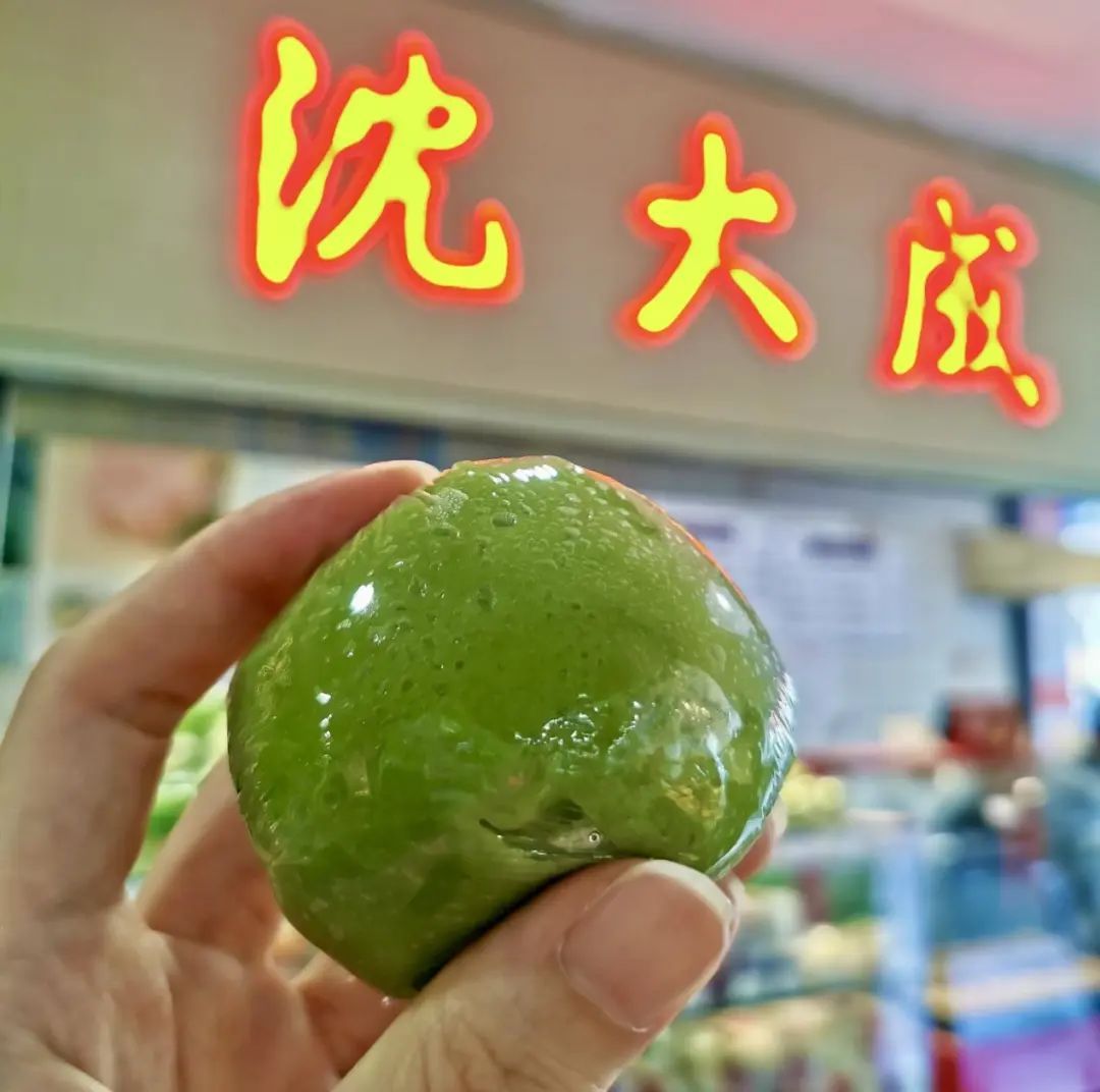 始创于1875年的沈大成,现制青团外皮更显翠绿,与其他老字号青团放在一起时,相当具有辨识度~汇联商厦这家沈大成门店的玻璃橱窗后,一笼笼新鲜出炉的青团,个个体态饱满,油亮发光,令人垂涎欲滴!