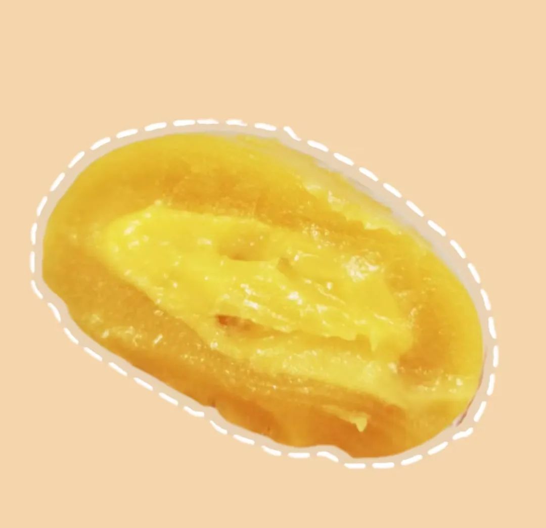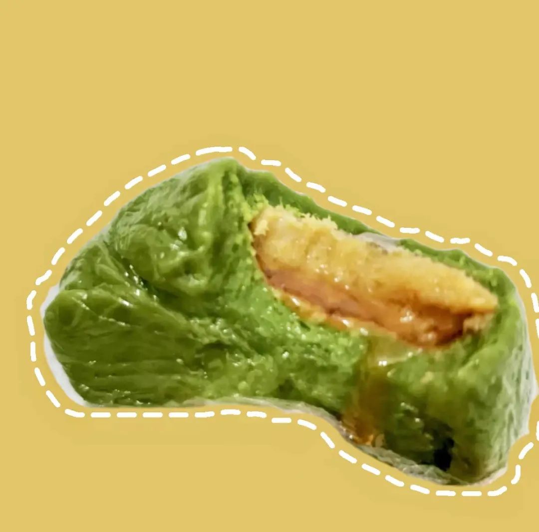 在一众绿油油青团里格外出挑的芒芒香果团,外皮柔韧耐嚼,内馅是芒果果酱,很浓稠,小小的芒果颗粒丰富了口感层次。仔细品味,芒芒香果团的香气和味道似乎与新鲜芒果关联不大,吃起来虽然不乏新奇感受,但不一定适合新鲜芒果的忠实拥趸,好奇宝宝倒是可以单买一个尝尝。