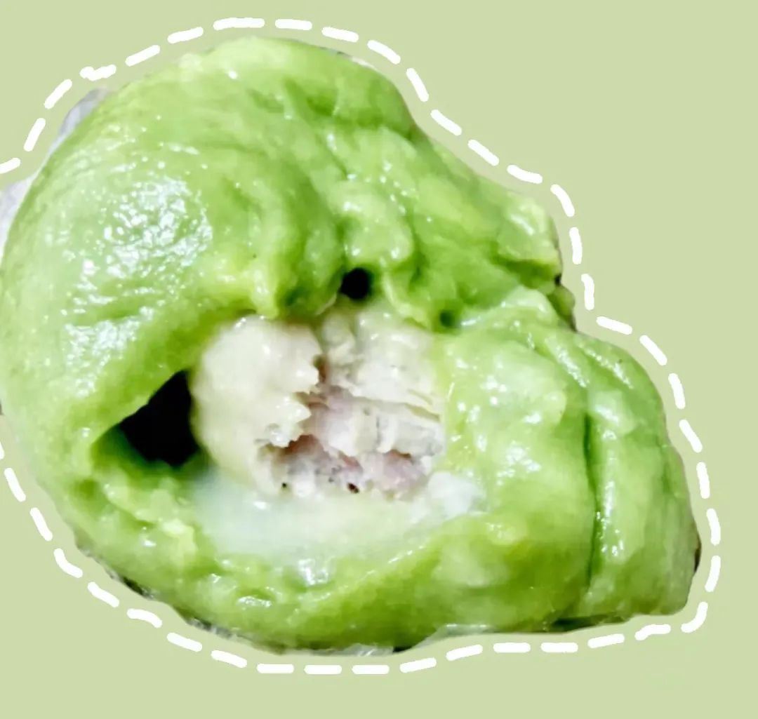 迫不及待地一口咬开腌笃鲜笋丁青团,一大块包着笋丁的鲜肉,在鲜香汤汁的裹挟下滑入口中,春天最鲜美的味道随之在舌尖翩翩起舞~