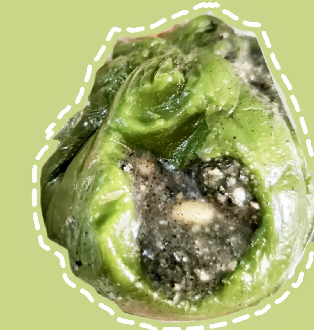 一口咬下去,流心芝麻瞬间爆浆,带来满口甜蜜!更有一颗颗完整的松子仁,在黑洋沙里畅快“游泳”~这款青团,嗜甜星人一定爱不释口~