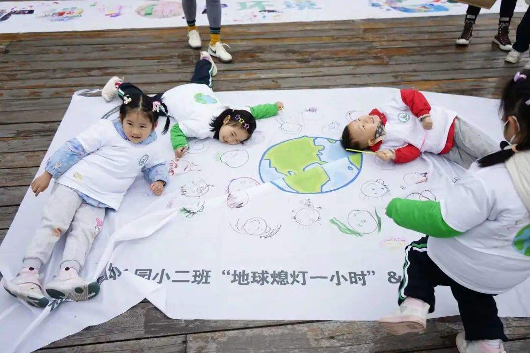 今年的“地球一小时”活动是疫情后的第一年活动,孩子们重新回归线下活动,通过自己的小小行动,推动地球的大改变。尽管他们的人生道路才启航不久,稚嫩的小手还不能熟练掌握画笔,但保护地球的理念已经在他们心中逐渐扎根。