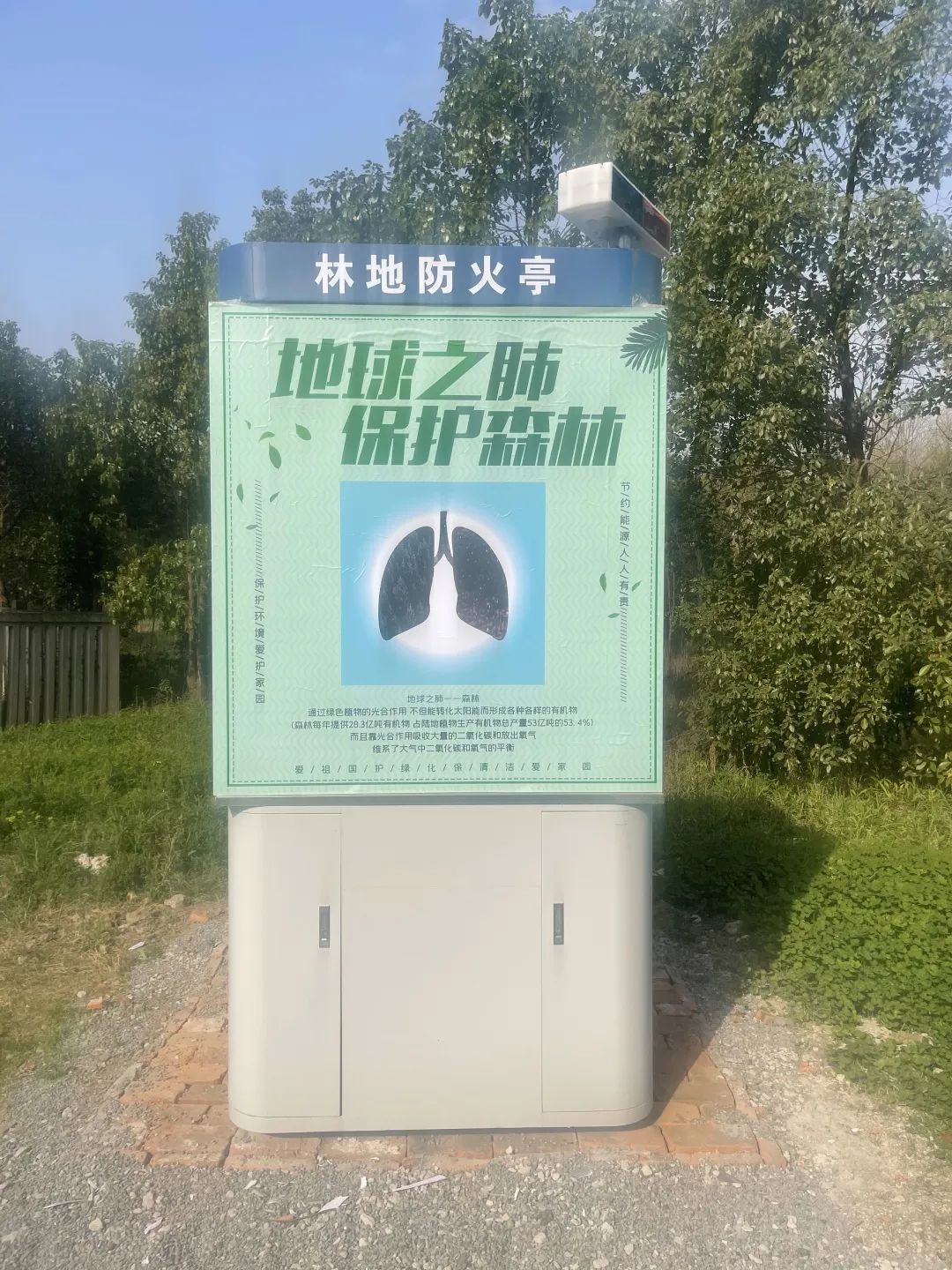 范家村还结合养护林实际需要,实现资源利用最大化,让闲置的核酸采样亭变身“林地护卫亭”,亭子内部放置的物品也由核酸采样管和防护服变成了现在的灭火器和消防自救呼吸器。