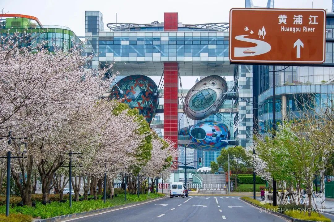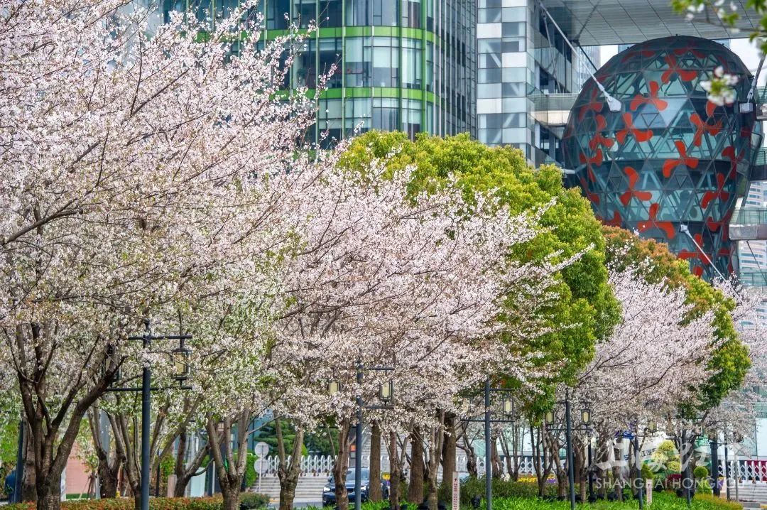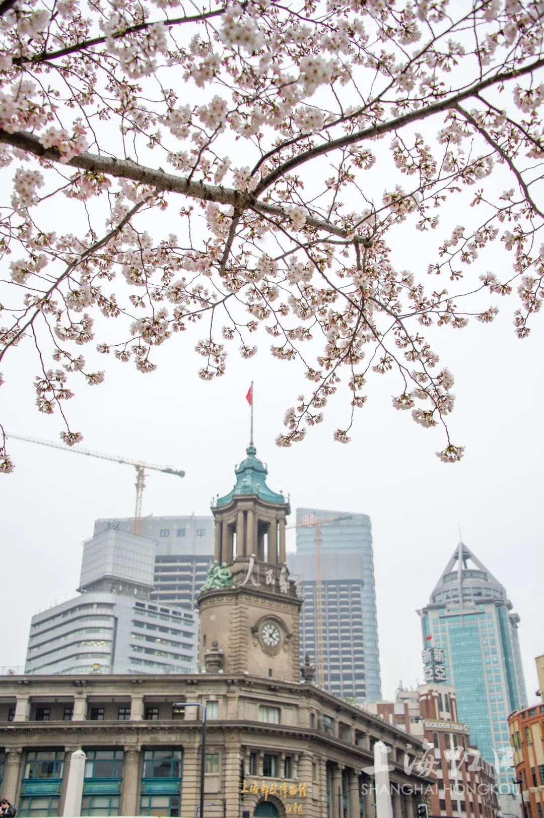 若要优哉游哉地边散步、边赏花,可以一路往南,去北外滩滨江绿地,穿行于樱花林中,唯美氛围瞬间拉满。