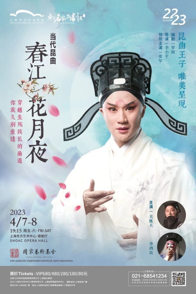 作为第十三届东方名家名剧月演出之一,今年4月7日至8日,“昆曲王子”张军将联袂关栋天、李鸿良等京昆实力派表演艺术家,在上海东方艺术中心再度献演当代昆曲《春江花月夜》。