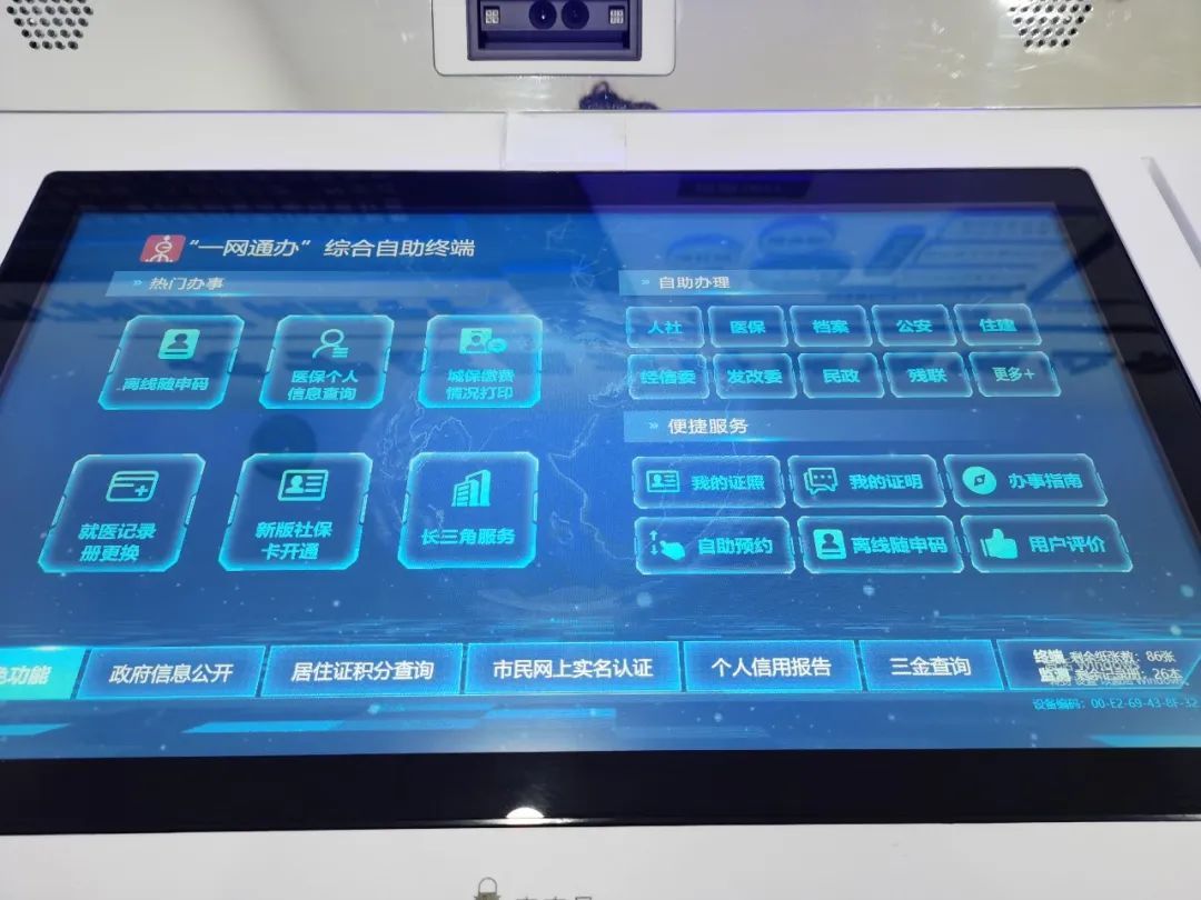在服务区内,设置了多台功能全面、智能便捷的自助服务设备,如社保自助查询机、医保自助服务机、自助存取件机、自助拍照机、居住证自助一体机、“一网通办”综合自助服务终端等,为居民提供“不间断”服务。