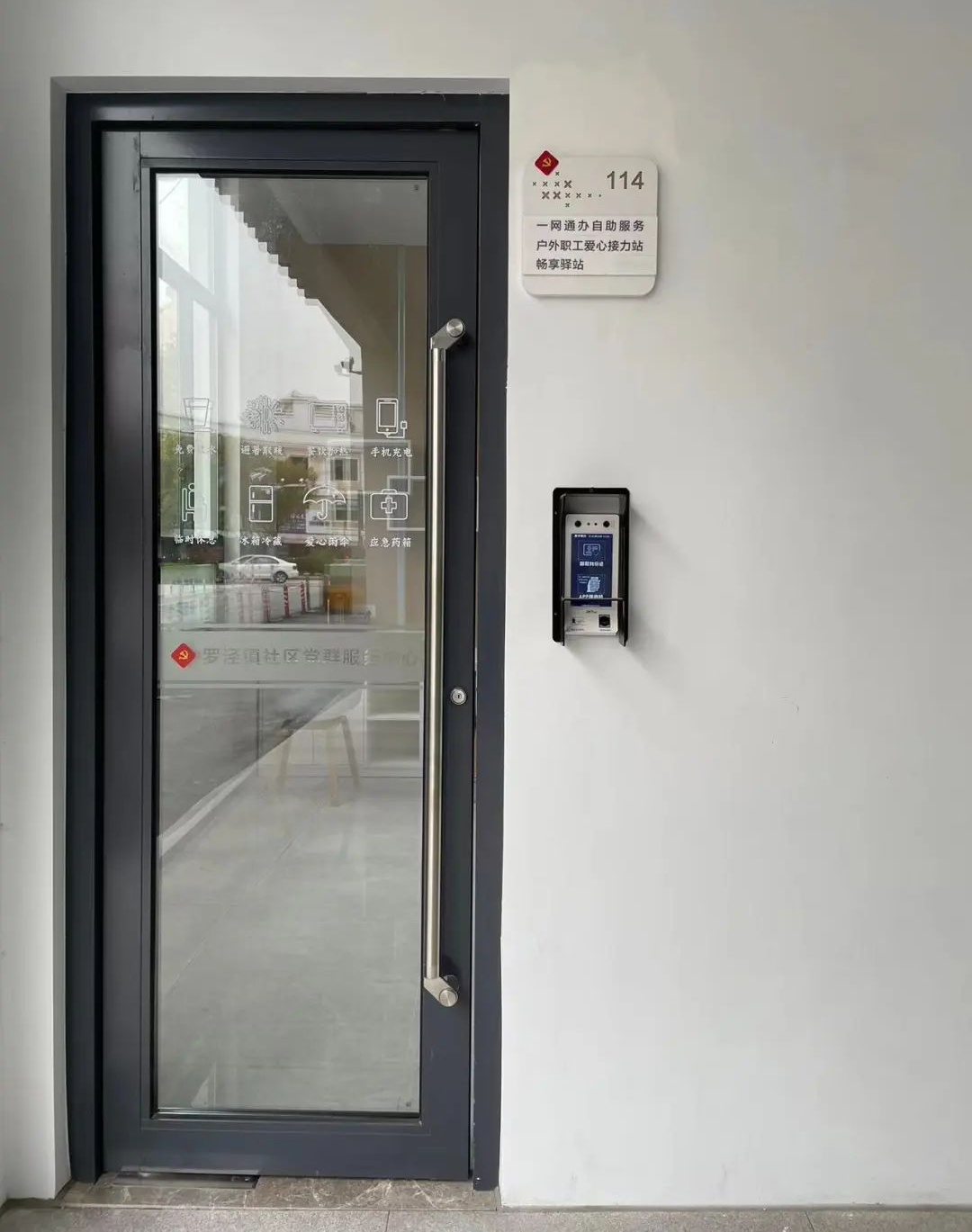 24小时“一网通办”自助服务点设置在宝山区罗泾镇社区党群服务中心(萧月路153号)门口左侧的位置。服务点配有智能门禁、“一网通办”24小时自助机和自助寄取柜等设备,居民通过刷身份证或“随申码”即可进入。