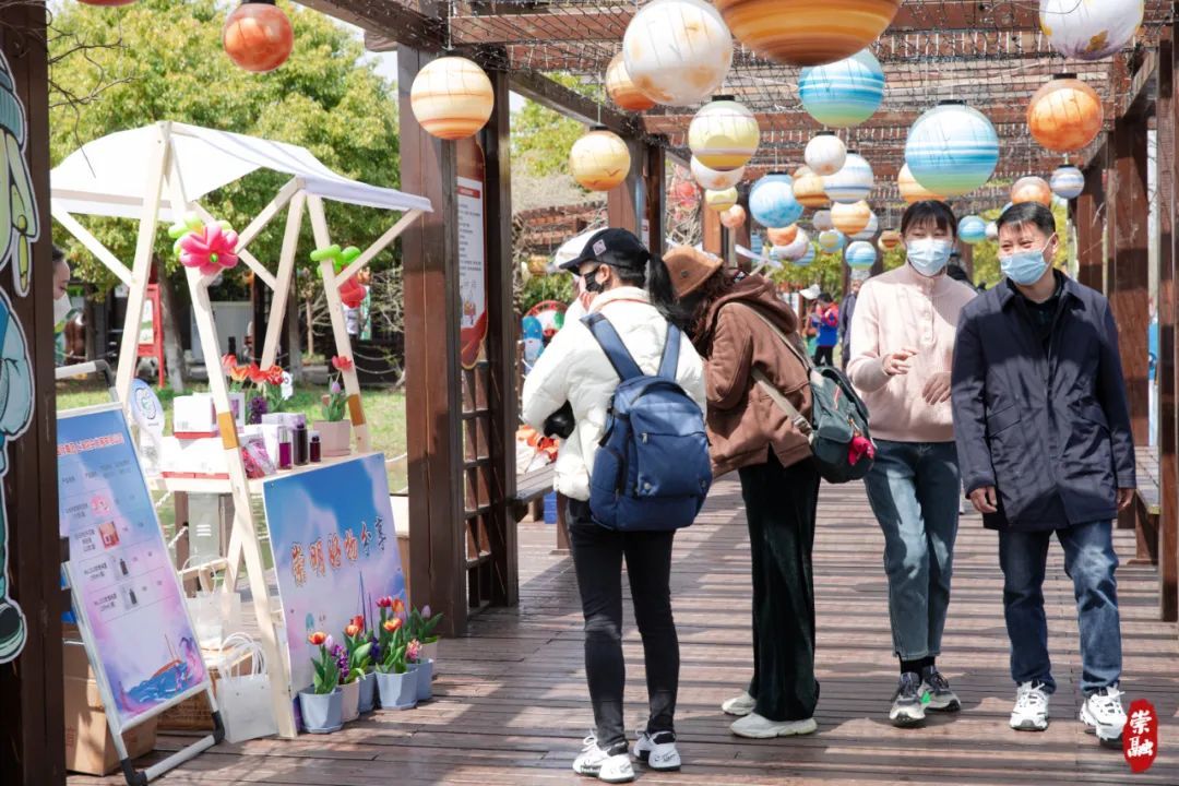 现场设置了崇明好物展示区、音乐表演区等区域。在崇明好物展示区,来自崇明本土的10多家企业,集中展销崇明特色好物产品。其中包括上海冠华不锈钢制品股份有限公司锅巴锅、炒锅等明星产品,上海大陆酿造有限公司的老白酒系列产品,江南三民文化村的土布产品等。各个摊位都人气十足,崇明特色产品受到游客欢迎。