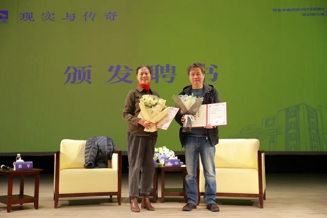致辞后,举行了华东师大远读批评中心聘书颁发仪式,聘任王安忆、余华为远读批评中心荣誉作家。朱国华向两位作家颁发聘书。