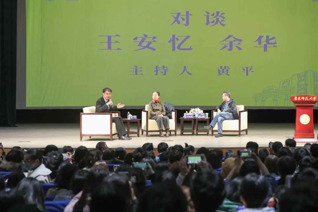 王安忆与余华的对谈由华东师大中文系教授、中国创意写作研究院副院长黄平主持。