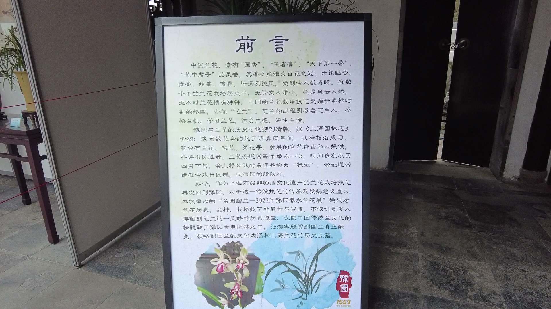 2013年兰花栽培技艺列入上海市非物质文化遗产项目。2018年豫园举办首届兰花展之后,便成立了兰花栽培基地,在兰花栽培技艺“非遗”传承人冯安清先生的指导和传承下,豫园人也开始学习培育兰花。