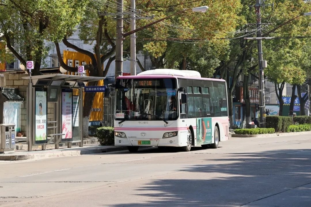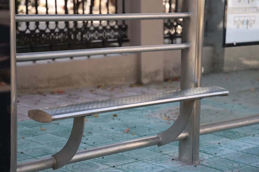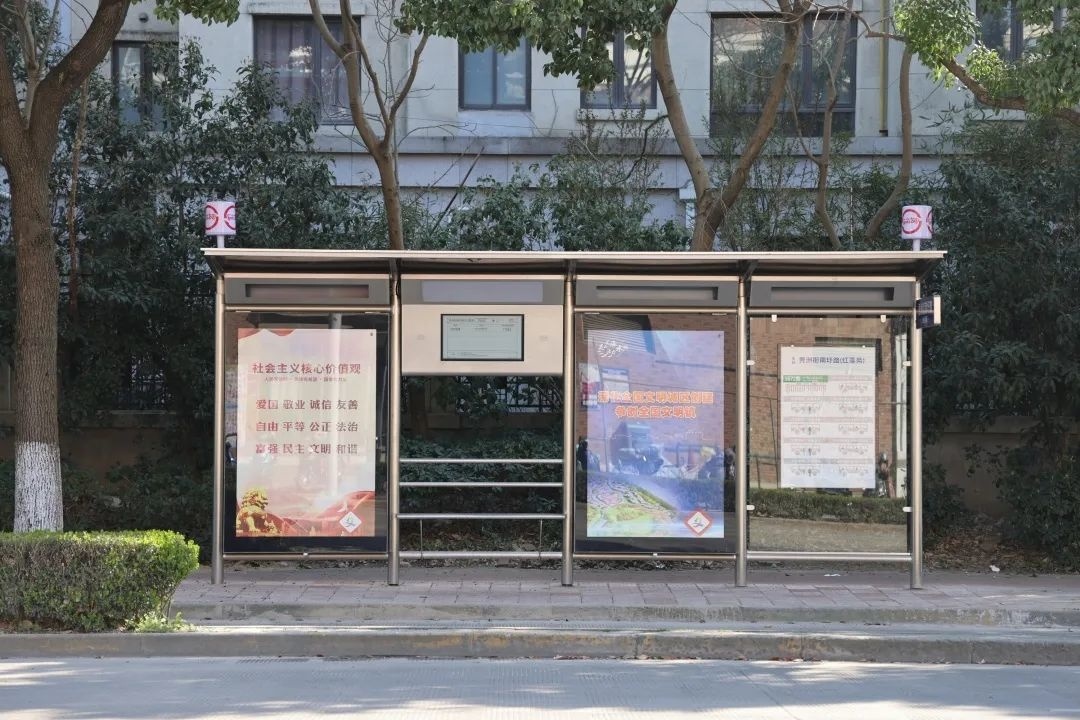 1671路、1672路、朱泾7路是朱泾镇区内的主要公交线路,途经罗星路、万安街、金龙新街等多条主干道,客流量较大,乘坐群体以老年人居多,考虑到长时间站立等车会让乘客感到疲惫,候车亭内还贴心地设置了座椅。此外,今年朱泾镇还更新了原先较早一批建设的铁质站牌,替换成了三角站杆,进一步打造更加舒心、放心的候车环境。