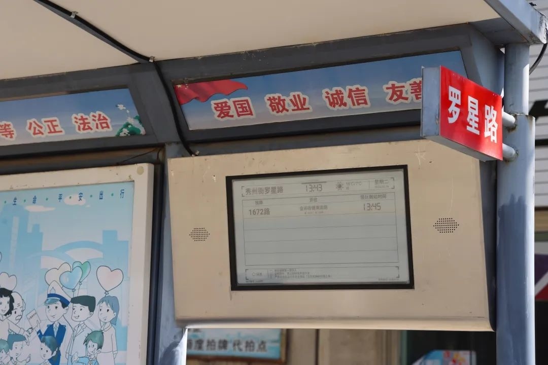 “新的候车亭干净漂亮,一抬头就能看到公交车还有多久到。我要坐1672路公交车,从屏幕上能看到车还有2分钟就到站了,一目了然。”家住朱泾镇的王阿姨在秀州街上候车时,对新建的智能公交候车亭赞不绝口。