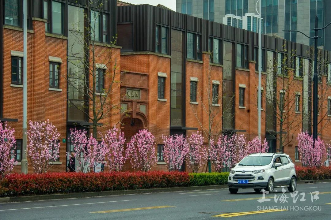 海伦路的机非隔离带种植了200多株帚桃,每年三月,竞相绽放,成为车水马龙间一道独特的风景线。