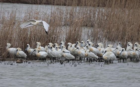 近日,崇明东滩保护区工作人员在水鸟同步调查中记录到黑脸琵鹭134只,在此之前保护区最高记录是在2016年10月记录到的97只。
