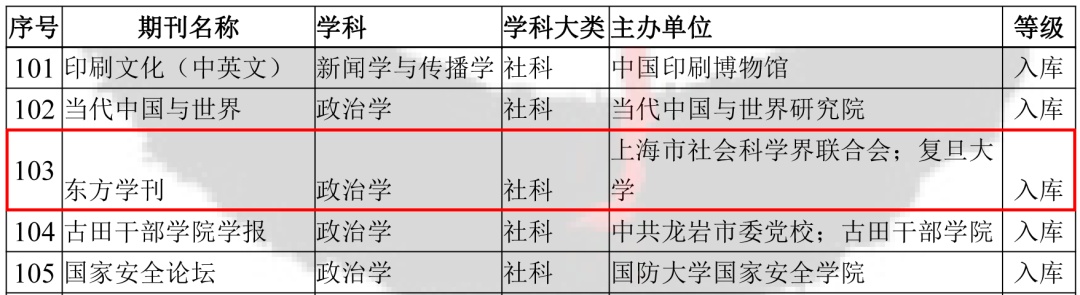 上海市社会科学界联合会主管,上海市社会科学界联合会、复旦大学主办的《东方学刊》获评入库。