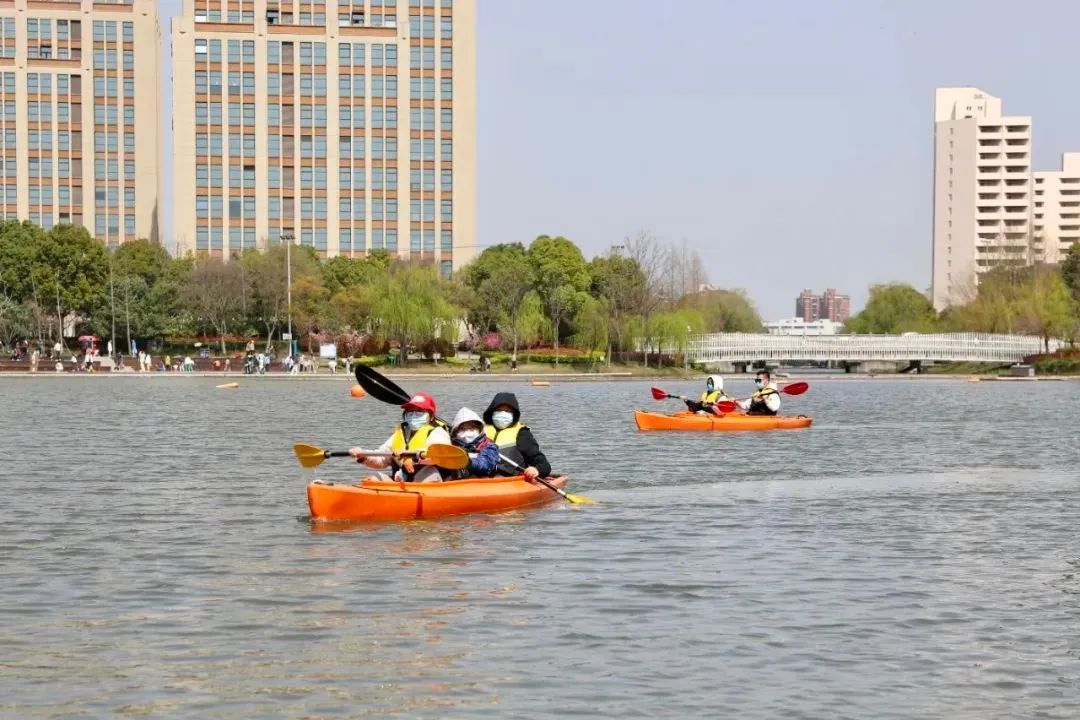 3月26日下午1点,小嘉在南翔镇银翔湖公园水上运动中心(指向轻艇会)看到,20名新晋“艇手”学习完基本的皮划艇操控技巧后,在教练的带领下开启一段长约6公里的水上之旅。