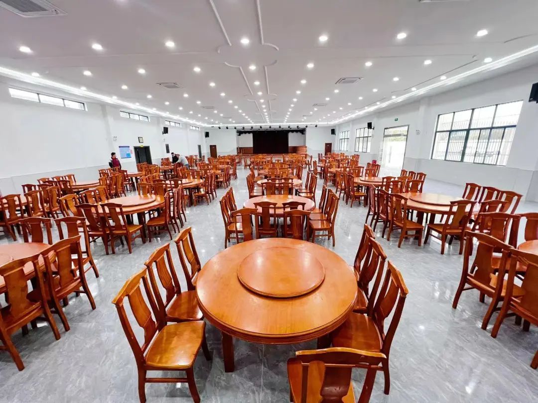 静华会所重新安装顶棚、粉刷墙面。据介绍,会所大厅可容纳70个圆桌,可满足两户人家同时办婚宴。