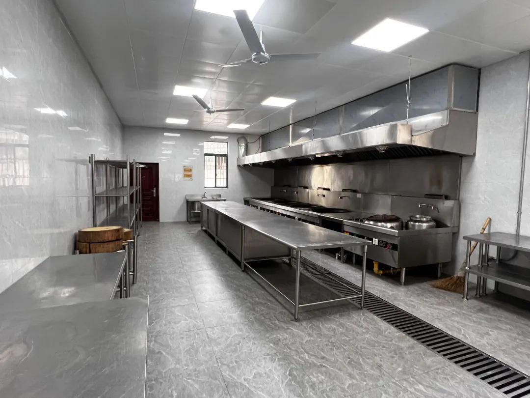 厨房分为烹饪、切配、清洗等区域,每块区域都延续大厅风格改建。另外,会所还增加了一间库房专门放清洁用具,公厕也按照三类厕所标准进行了升级。