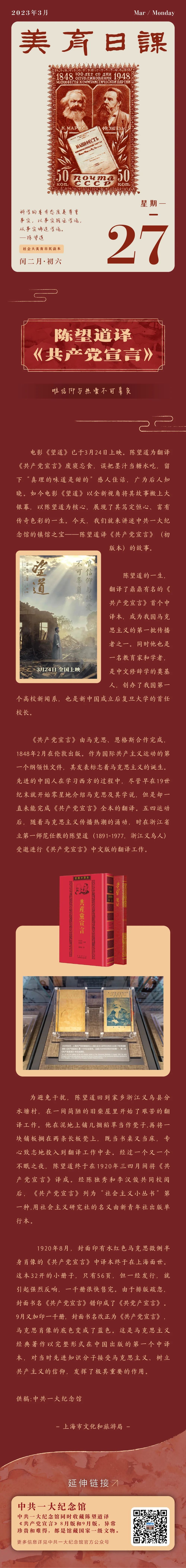 美育日课|陈望道译《共产党宣言》:唯信仰与热爱不可辜负