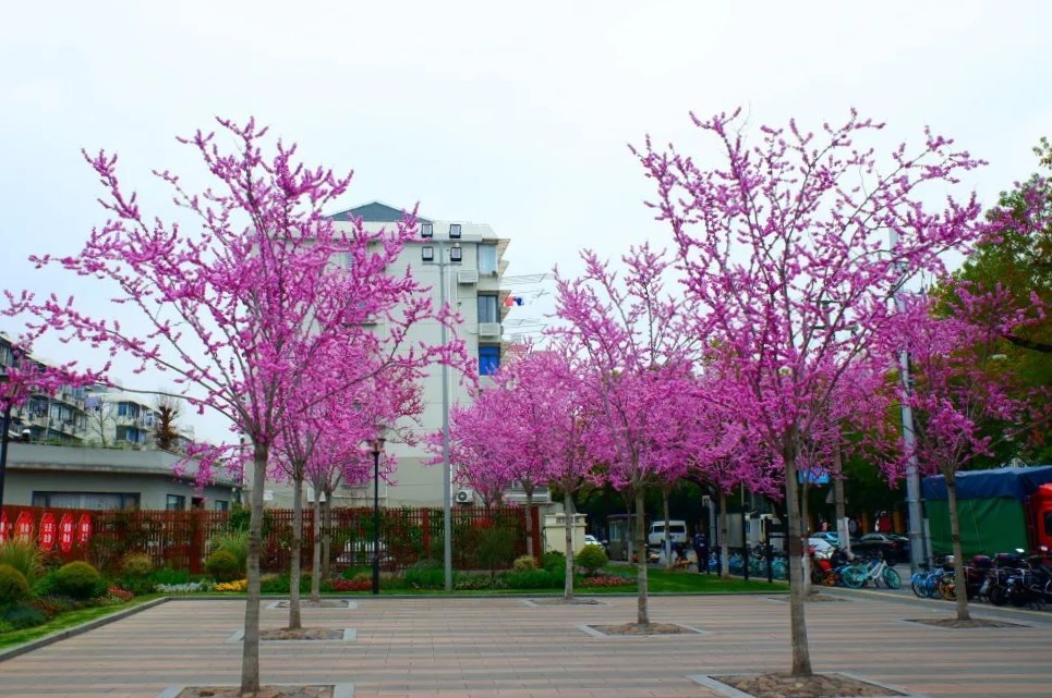 广场上共栽植巨紫荆20余株,品种为“四季春1号”。在三年的悉心养护下,巨紫荆在今年春季展现出极佳的观赏效果,花量多、色彩艳,成为春园中的又一特色景观。