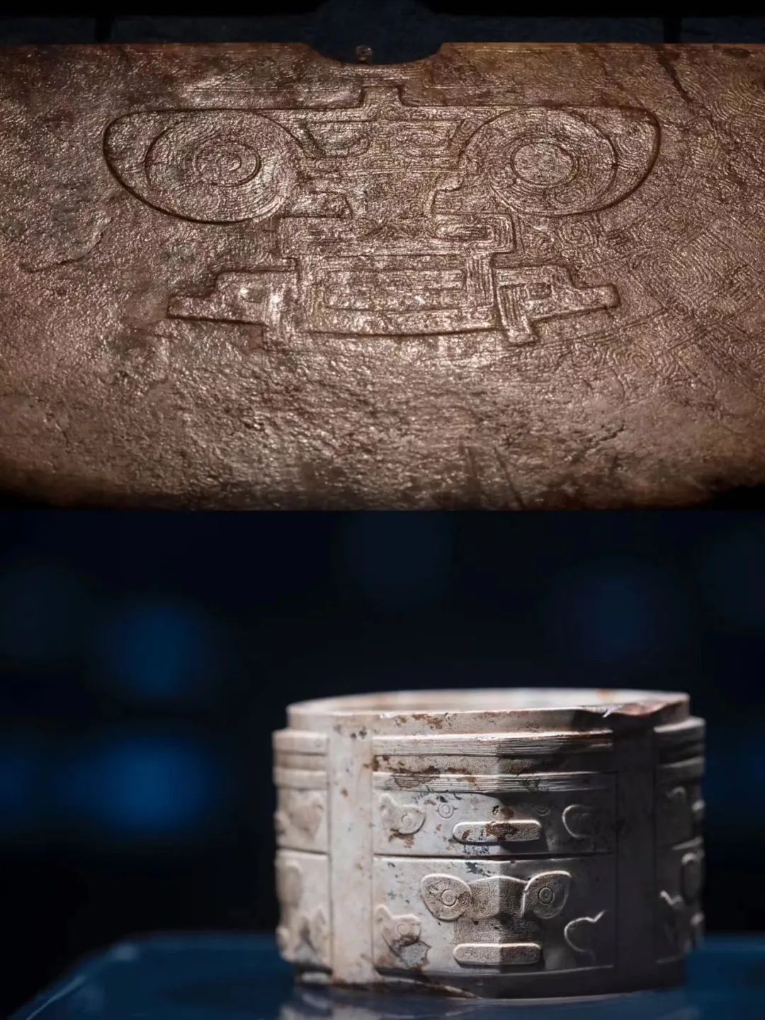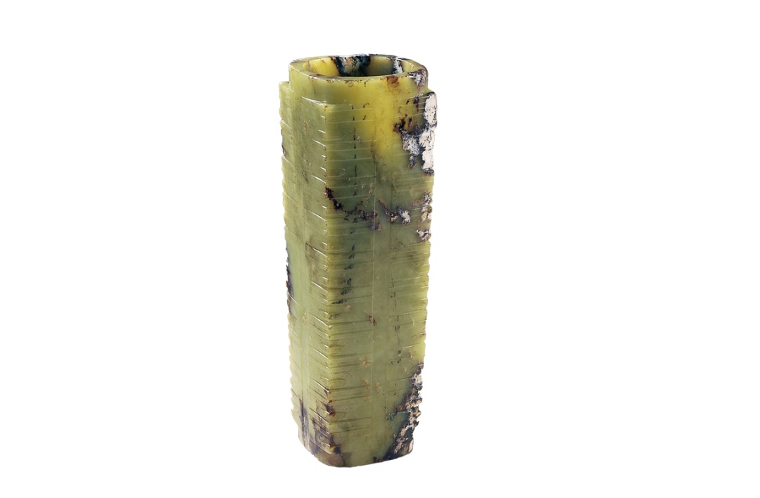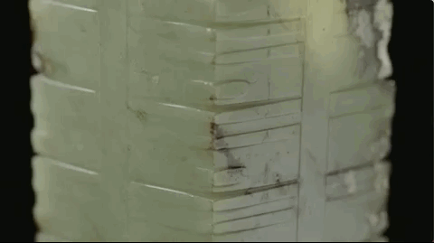 △十节玉琮表面的不规则划痕、污垢及油渍