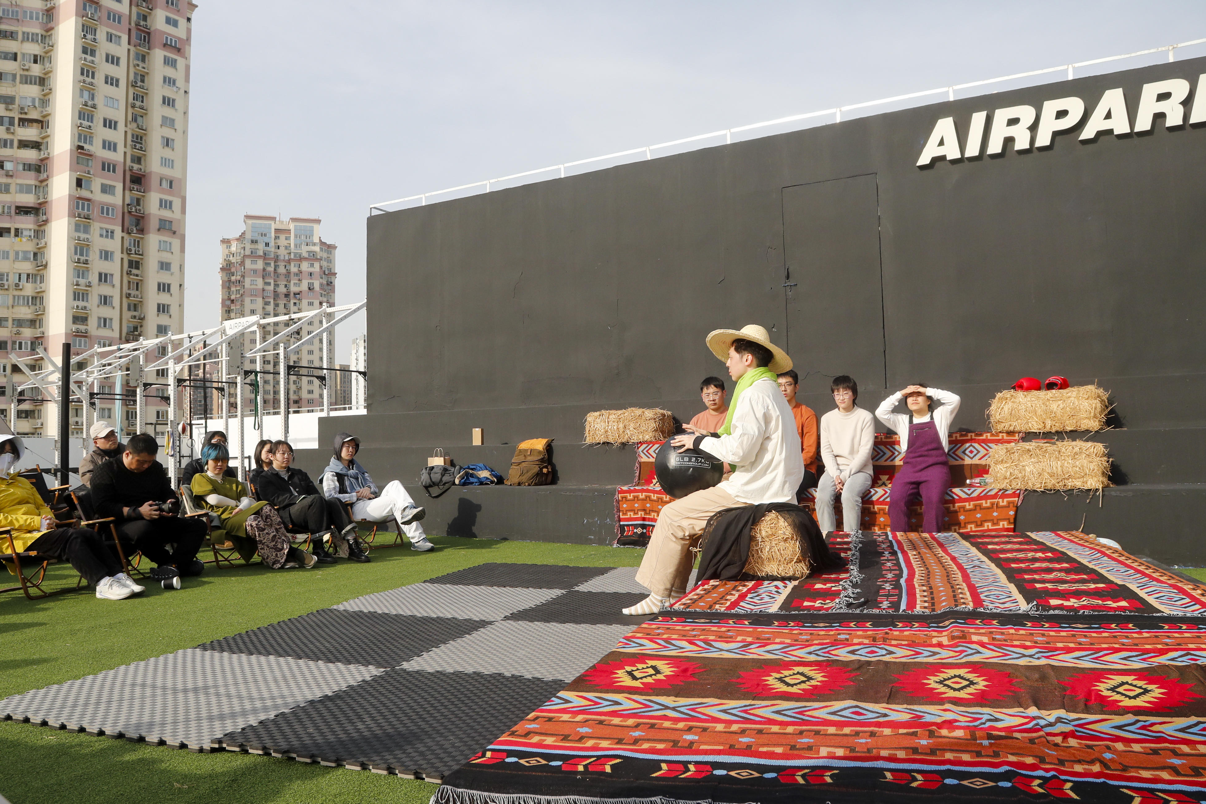 一人一故事是一种即兴剧场,着重观众与表演者之间的互动。观众在剧场上分享个人经验及感受,演员在聆听后,以形体、声音或戏剧等形式,实时呈现刚才被讲述的故事,把即兴演出作为礼物回赠观众,所以每一场演出都可谓是唯一“限定版”。作为音乐剧演员的Airpark活动策划李恩妤谈起即兴话剧与户外场地的结合,她告诉记者:“将原本属于封闭的、室内的艺术形式带到开放的户外,是一次前所未有的大胆尝试,也是一种全新的体验。即兴话剧不需要剧本,不需要思考,不需要准备,将内在的感觉付诸行动,做出来就成。人们能在即兴戏剧的时空中有乐趣有成长,更好的放松、调节刻板的生活也是即兴戏剧的主张与氛围,这些都与户外运动有着共通点。”