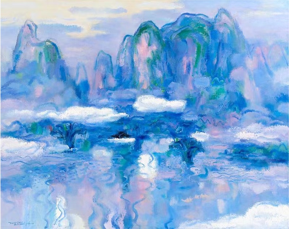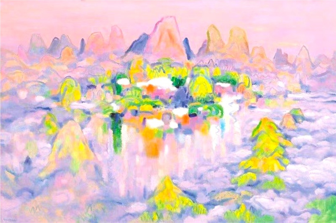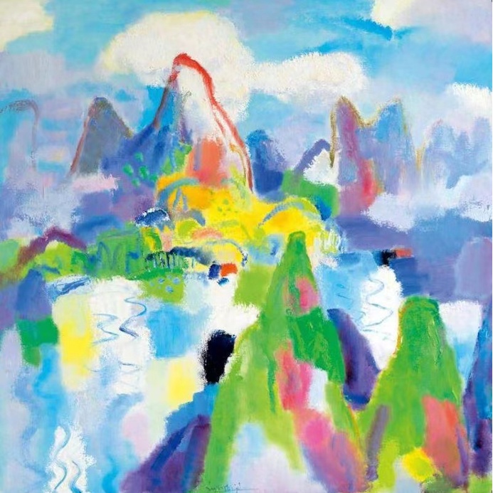 陈钧德在2000年左右研究线条和色彩后的意象性《山林云水》