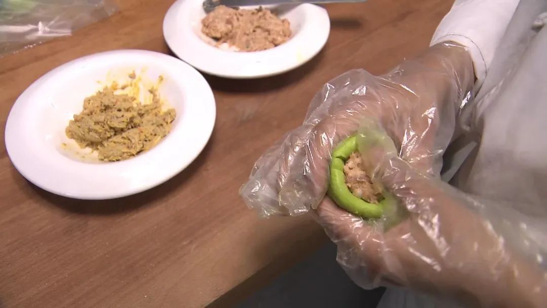 “我们的蟹粉鲜肉青团,是选用当季的艾草做的,里面放了纯手工拆的蟹肉。蟹是产自我们在宝应湖的养殖基地,请有多年经验的拆蟹师傅把蟹拆好后,再用新鲜的猪肉一起制作成为馅料。”上海蟹榭餐饮有限公司虹桥天地店店长赵丽说。