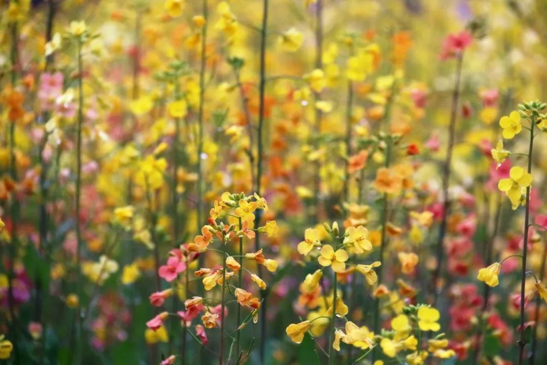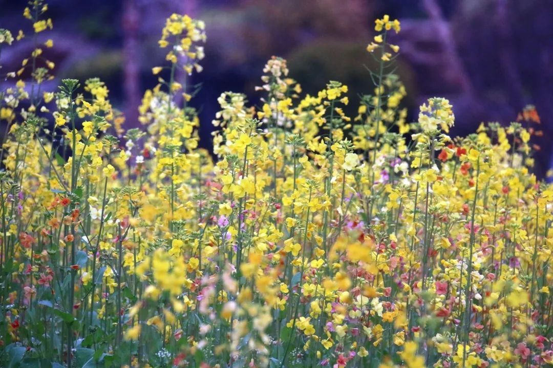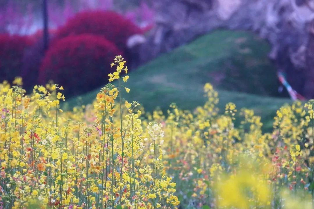 在春园中,还种有一大片彩色油菜花田。区别于普通作物型油菜花,彩色油菜花有鲑鱼色、浅粉色等多种花色,花期为每年3月,黄色的油菜花中点缀着朵朵菜花,仿佛一幅充满质感的油画。