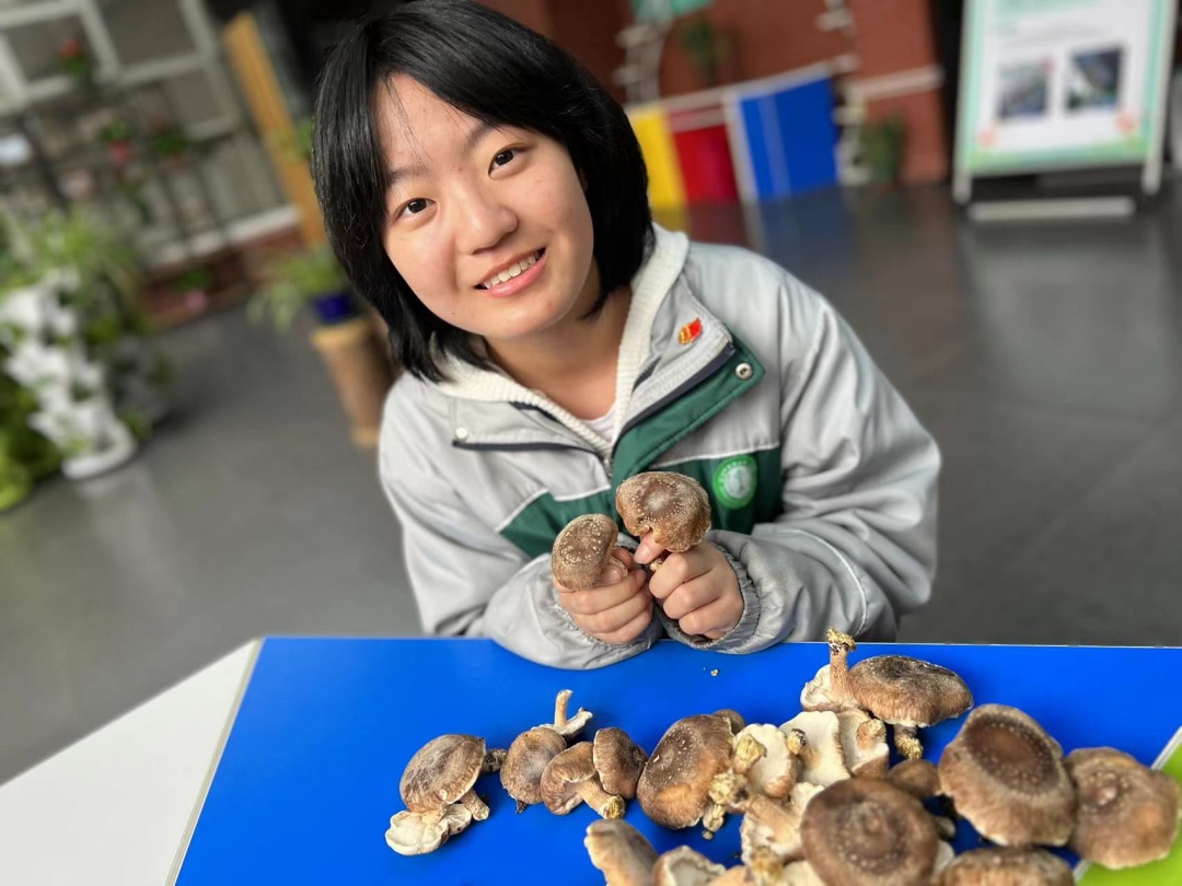 “我打算做一顿青菜炒香菇和一碗蘑菇汤,平时多是妈妈烧菜给我吃,但自己采回去的香菇,要自己做才更有意义!”高二女生司晨很高兴地向记者展示自己的收获。之前有同学通过生态素养课程率先带回收获的蘑菇,她十分期待自己也能亲手采摘。