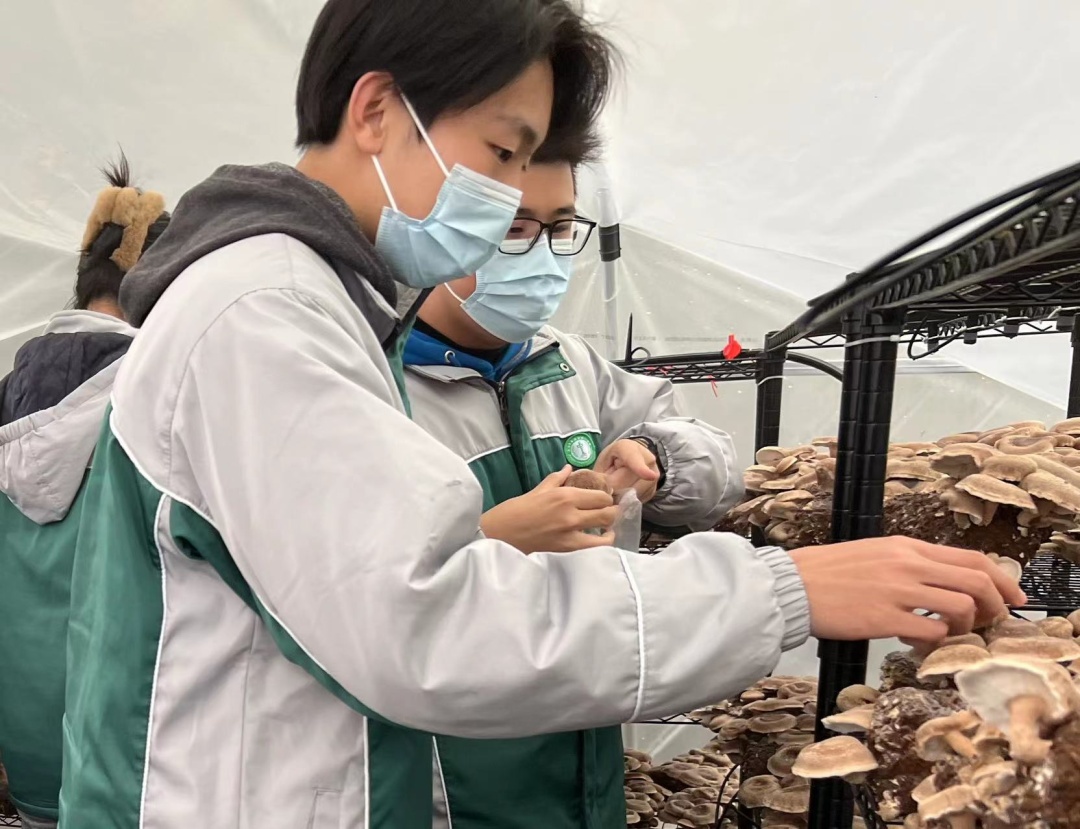 在大棚里,从书本中学习的知识一下子立体起来。棚内有烟雾,“这是香菇正在扩散孢子。”老师解释。按照老师的指点去寻找品质最好的蘑菇,司晨花了很久才终于找到,让她很有成就感。“这也给我一个启示:坚持去做一件事,不一定马上会有成效,但正确的努力不会让好的结果缺席。”
