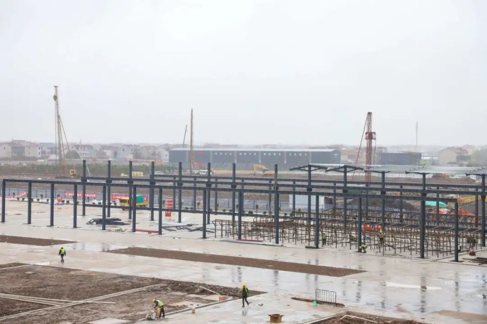 钢筋绑扎区、制梁区、存梁区各就各位,龙门吊、行车等设备陆续进场……随着东方枢纽上海东站地下基础开建,通向上海东站的沪苏通铁路太仓至四团段的建设也在持续推进中。