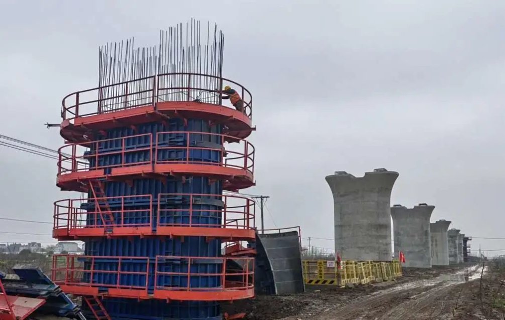 制梁场内,施工人员正在安装钢筋绑扎区的设备。制梁场边上,20米高的高架墩身已经竖起。相关负责人介绍,制梁区设置制梁台座8个,生产线上配置了龙门吊进行箱梁钢筋调运,门式搬运机进行移梁作业;存梁区设有双层存梁台座51个,最大存梁能力102孔。“目前,相关设备正按计划进场安装,预计今年9月开始架梁施工。施工过程中,还将利用智能化、信息化的手段,减少人员投入,提升架梁施工效率。”