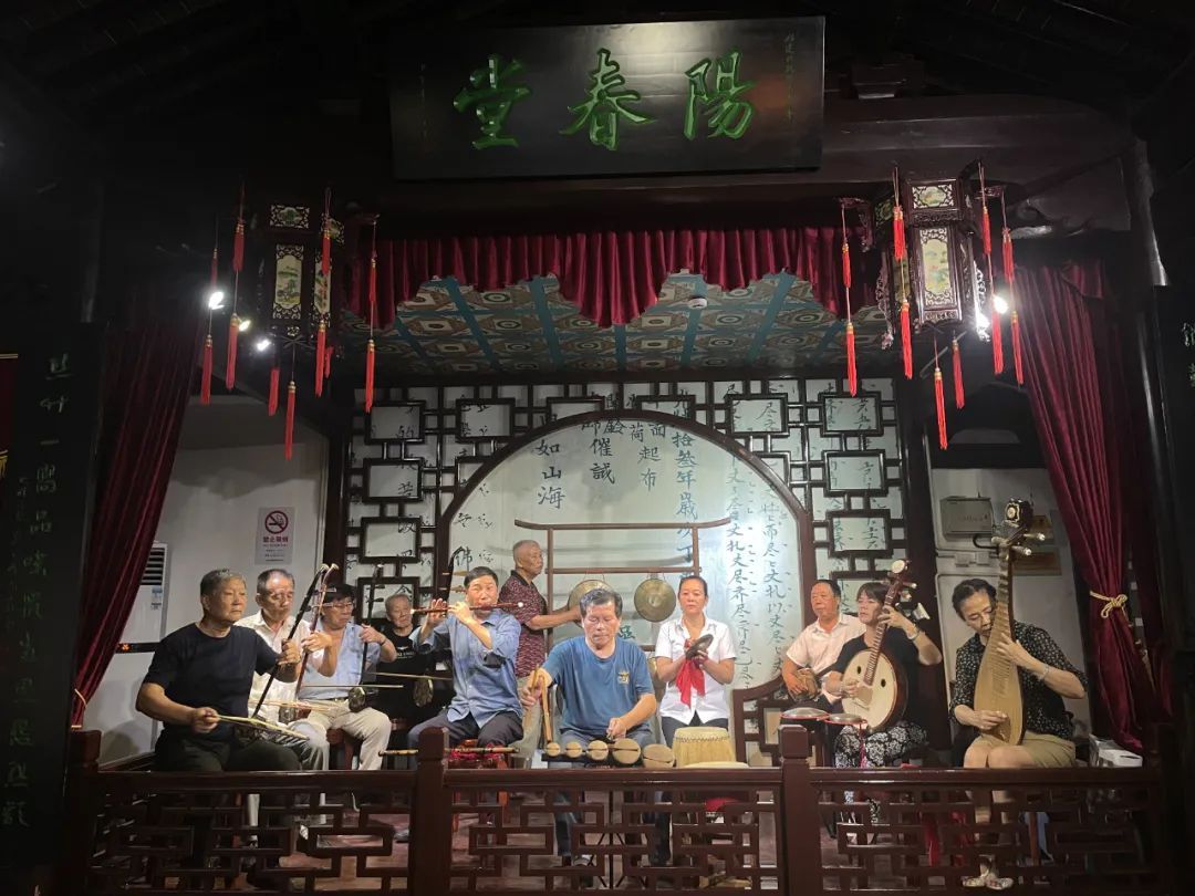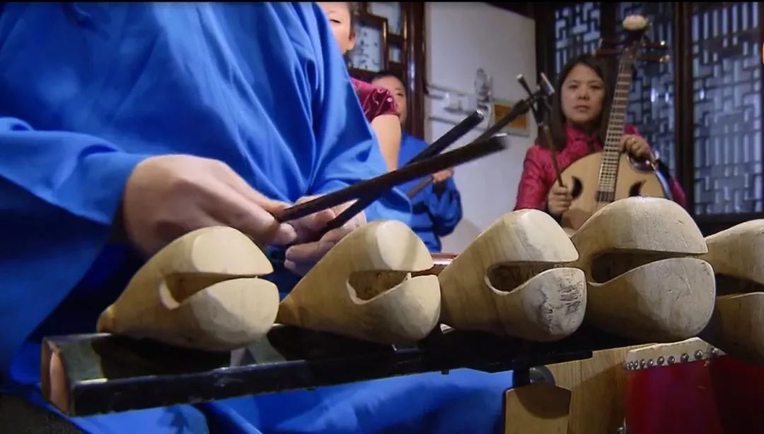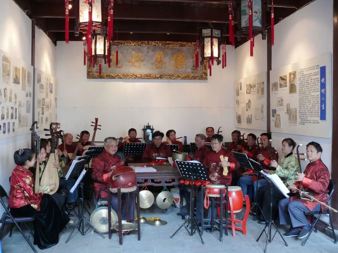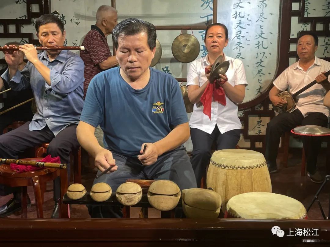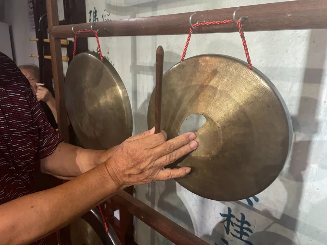 据考证,当时,泗泾古镇上有两家戏班同时做生意,其中一家戏班演奏的十锦细锣鼓技艺精湛,人气火爆。另一家戏班因心里没底,在休息时间悄悄砸破了他们的一面锣。直至演出时,锣面的破裂才被发现,艺人只能调整敲击方式,确保演出顺利进行。但没想到,这面来不及换下的破锣,却正好在台上发出了合适的音色,造就了别具一格的“柴”音。从此以后,这面破锣就传承下来,成了十锦细锣鼓的“独门法宝”。