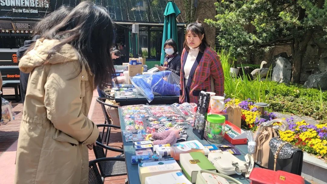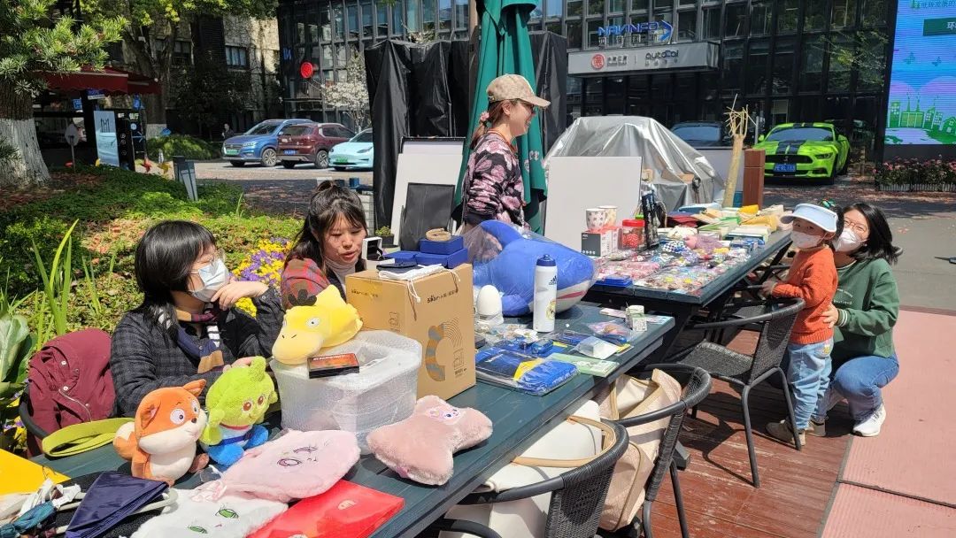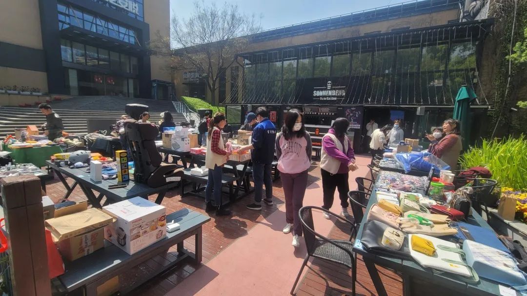 3月28日中午,上海花园坊节能环保产业园内的小广场上聚集了很多人。这里正在举办二手集市活动,正值午休时间,不少在本园区内工作的白领选择借此机会前来摆摆摊、淘淘宝。