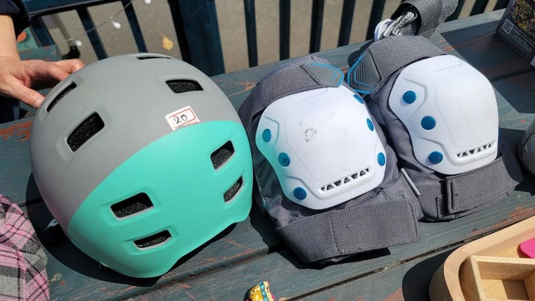 “这些东西当年买的时候都不便宜,它们保护我女儿学会了轮滑,现在用不到了,直接扔掉很可惜。如果这些东西能再帮助其他的小朋友学会轮滑,就太有意义了”。摊主陈小姐告诉记者,自己售卖的是女儿初学轮滑时使用过的护具,包括头盔和一对护膝,只需要20块钱。