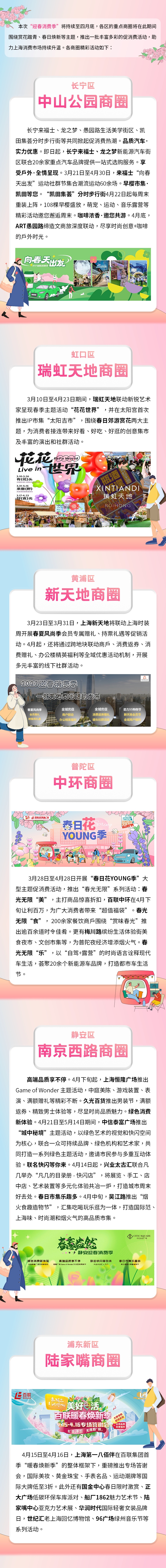 市商务委介绍,2023迎春消费季重点商圈主题活动3月28日启动。本次迎春消费季将持续至4月底,各区的重点商圈将在此期间围绕赏花踏青、春日焕新等主题,推出一批丰富多彩的促消费活动。详见↓